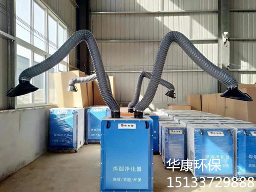 移動式焊煙凈化器采用具有耐化學腐蝕性和耐熱性的活動臂管,外部軟管為PVC和玻璃纖維混合物,有較強的柔韌性,不易折斷和磨損。活動臂管內有鋁合金材質構架,可自行支撐,使軟管停止與三維空間的任意位置。吸風罩可以根據現場的工作需 要進行配置,如加大型、圓形、附帶工作燈型、方口型等。懸掛式焊煙凈化器固定于墻上或房頂,不占空間,在需要的時候只需將活 動臂管拉到的位置即可隨時進行凈化。